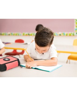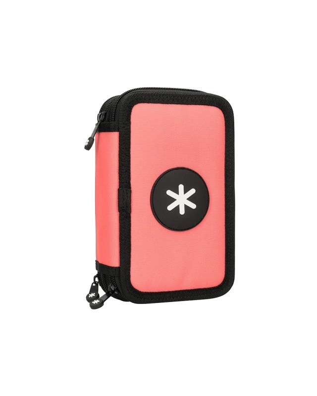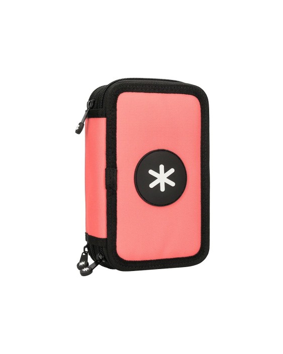 Plumier escolar antartik triple cremallera color coral 36 piezas