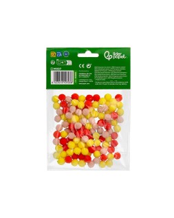 Estos pompones de colores de 1 cm en tonalidades cálidas son el detalle perfecto para cualquier proyecto de manualidades. Sus colores vibrantes y cálidos son ideales para crear decoraciones acogedoras y llenas de vida. La bolsa incluye 120 unidades en una variedad de tonos cálidos.
