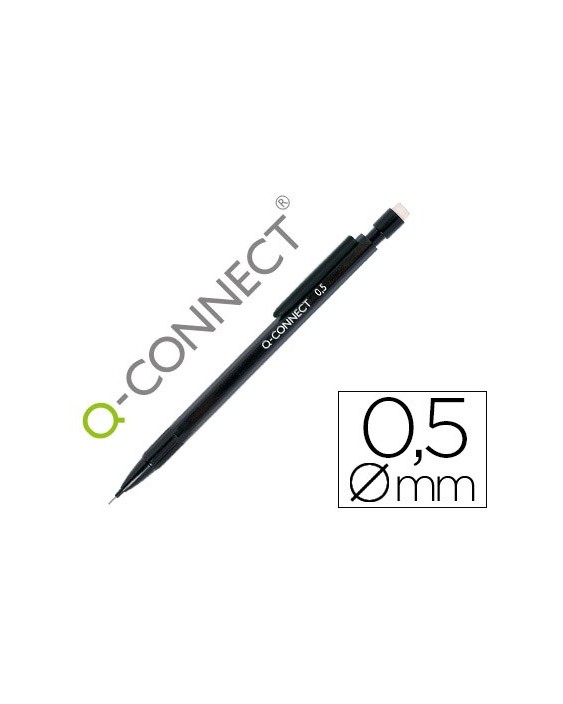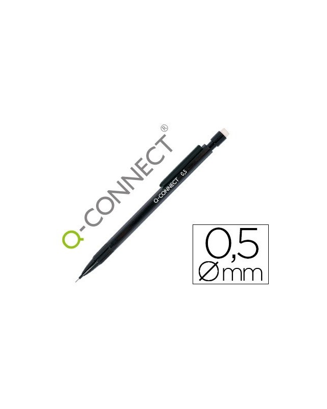 Portaminas q-connect 0,5 mm con 3 minas cuerpo negro con clip negro