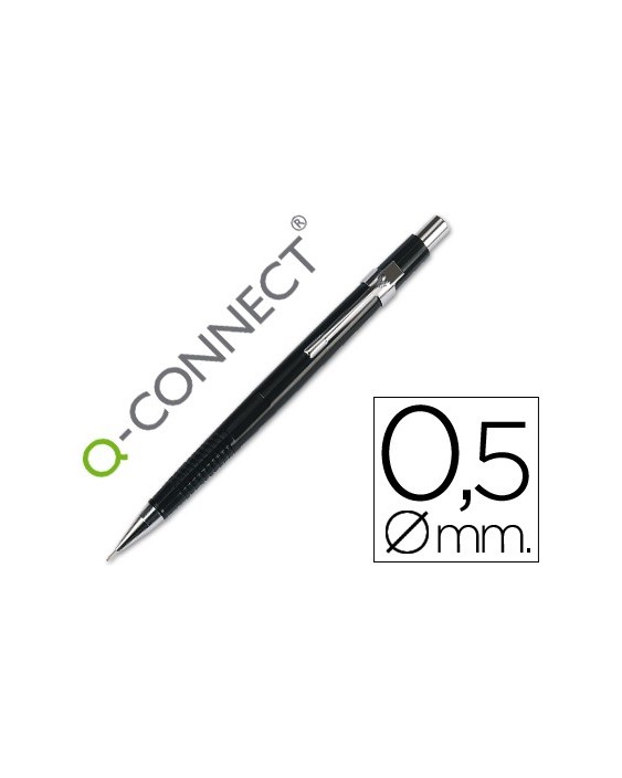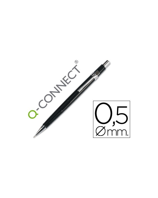 Portaminas q-connect 0,5 mm con tres minas cuerpo negro clip metalico