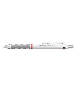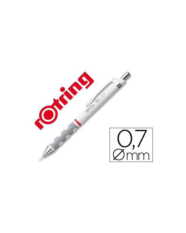 Portaminas ligero con cuerpo triangular de plástico. Empuñadura de goma suave al tacto, para una mayor comodidad. Mecanismo de latón de rotring para que la mina se deslice con precisión. La carcasa mantiene fija la mina y evita que esta se rompa. No quedan rastros en la hoja si se dibuja con regla. Colores surtidos. Mina de 0,7 mm incluida.