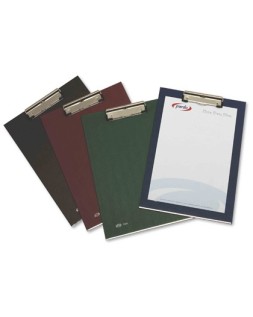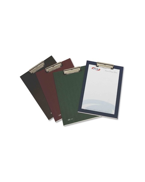 Portanotas pardo carton forrado pvc folio con pinza metalica azul