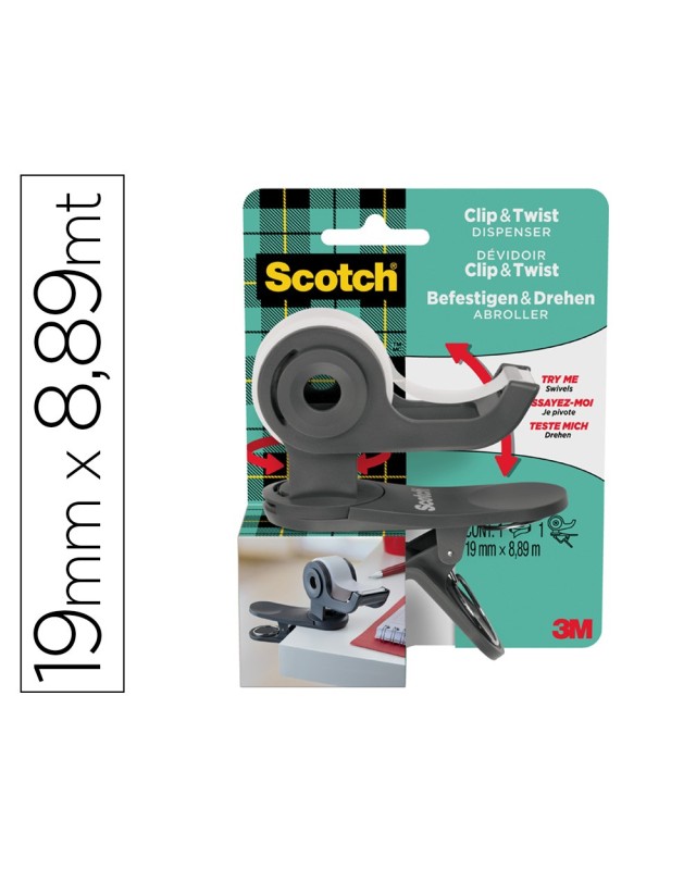 Portarrollo scotch clip & twist incluye 1 cinta scotch magic 8,89 mt x 19 mm