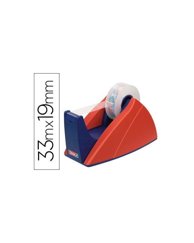 Portarrollo sobremesa tesa con cuchilla de corte recto para cintas de 33 m color azul/rojo