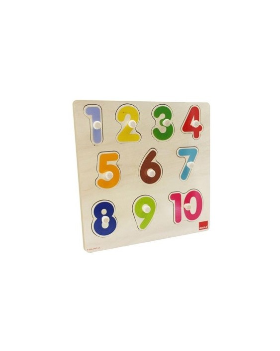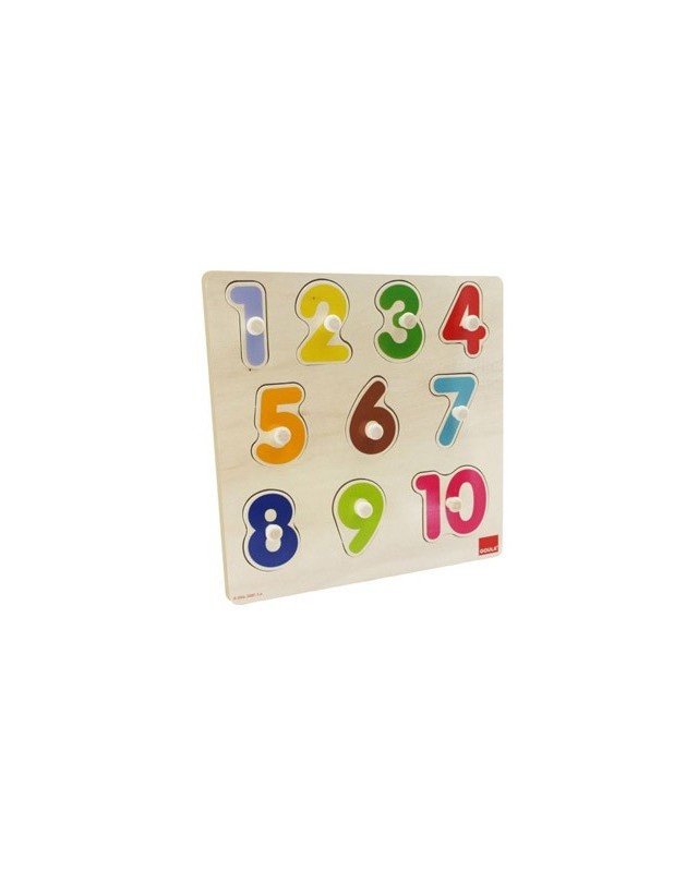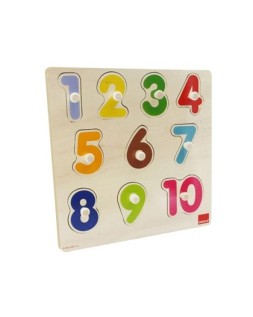 Puzle de madera de 10 piezas para aprender a contar del 1 al 10 asociando el número con la cantidad de animalitos. Desarrolla capacidad visual y de razonamiento. Aprendizaje de diferentes animales y números. Desarrolla la habilidad manual. Alto nivel educativo. Más de 2 años. Medidas: 28 x 28 x 2,5 cm.