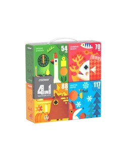 Este set de 4 puzzles, para niños de 4 años en adelante, contiene cuatro rompecabezas progresivos bellamente ilustrados de menos a más piezas, 54, 70, 88 y 117 piezas. De fácil a más difícil, lo que ayuda a promover la coordinación mano-ojo y las habilidades de observación. Estos puzzles temáticos de las Cuatro Estaciones, permiten a los niños aprender más sobre las estaciones, mientras juegan. Incluye una guía ilustrada de cada puzzle.