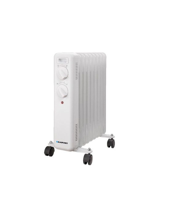 Radiador eléctrico de aceite Blaupunkt BP1017. 2000W. 9 elementos radiantes, compacto y seguro, ideal para calentar cualquier habitación de forma eficiente. Termostato regulable, protección contra sobrecalentamiento, ruedas multidireccionales, asa para transporte, diseño compacto.Color blanco.