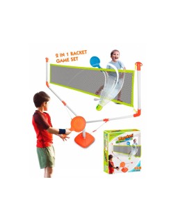 Conjunto de Juego de Raqueta 2 en 1, ideal para la diversión de los niños y niñas a partir de 3 años tanto en interiores como exteriores. Este versátil conjunto incluye una red ajustable y resistente, dos raquetas ligeras y una base con poste, pelota y volante para jugar a tenis o badminton. Fabricado con materiales duraderos y seguros, es fácil de montar y transportar, perfecto para llevar al parque o usar en el jardín. Este juego no solo garantiza horas de entretenimiento, sino que también fomenta la actividad física y la coordinación en los niños, promoviendo un estilo de vida activo y saludable.