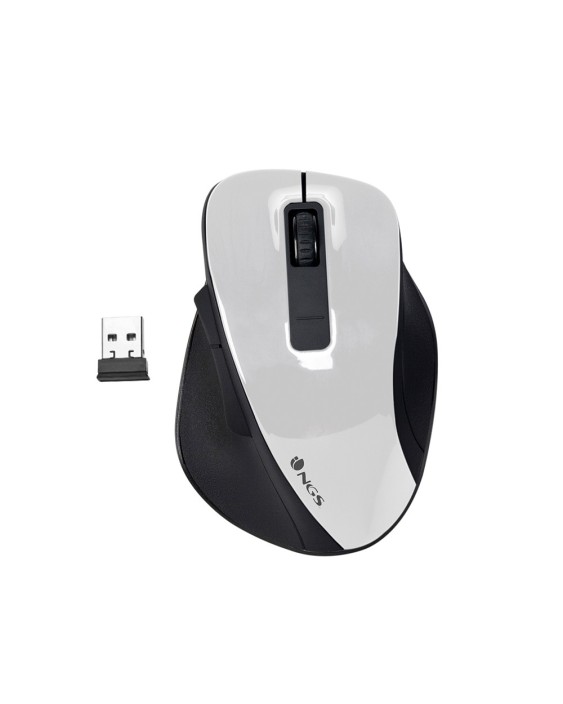 Ratón con sensor óptico y ratón RF de 2,4 Ghz especial para ordenadores desobremesa. Cuenta con 5 botones y una rueda de desplazamiento. Acabado br illante que combina con los laterales de goma contorneados para una comodidad total y mejor agarre. Una combinación cuidadosa de diferentes materiales y texturas. Instalación Plug and Play. Interfaz Nano USB. Cuenta con unsensor de alto rendimiento, DPI totalmente ajustable: 800/1200/1600. Alca nce inalámbrico de hasta 10 metros. Diseñado para diestros. Gran tamaño. Color blanco.