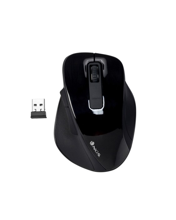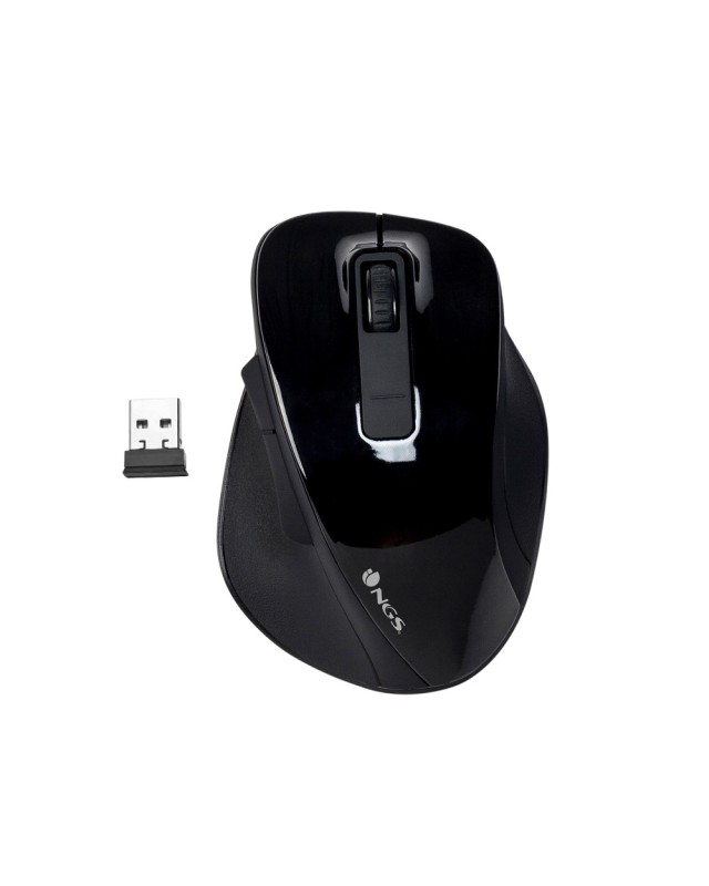 Ratón con sensor óptico y ratón RF de 2,4 Ghz especial para ordenadores desobremesa. Cuenta con 5 botones y una rueda de desplazamiento. Acabado br illante que combina con los laterales de goma contorneados para una comodidad total y mejor agarre. Una combinación cuidadosa de diferentes materiales y texturas. Instalación Plug and Play. Interfaz Nano USB. Cuenta con unsensor de alto rendimiento, DPI totalmente ajustable: 800/1200/1600. Alca nce inalámbrico de hasta 10 metros. Diseñado para diestros. Gran tamaño. Color negro.