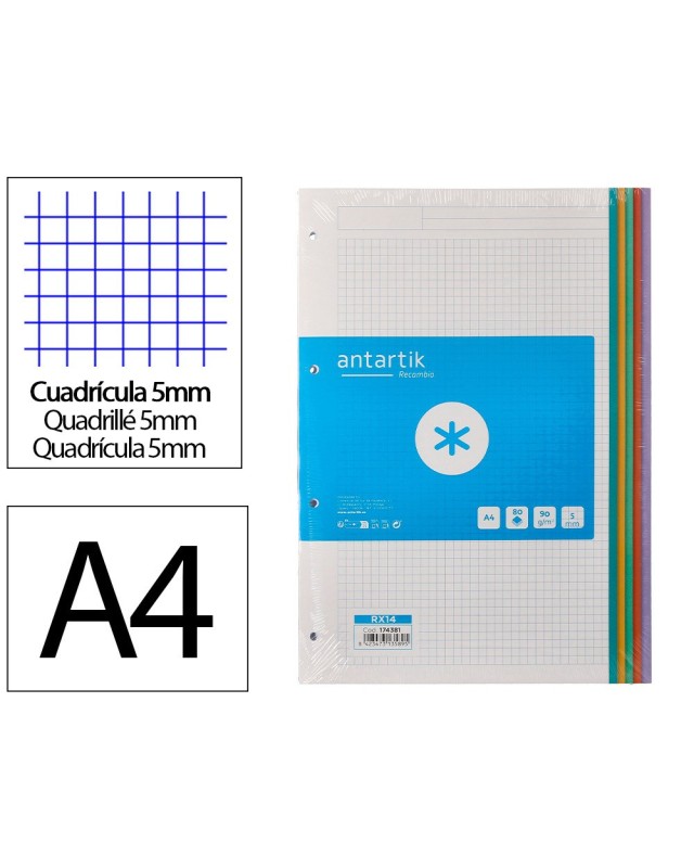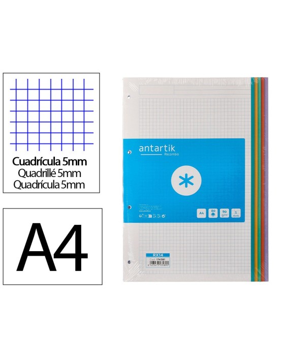 El recambio A4 Antartik de 80 hojas es la opción ideal para quienes buscanorganización, estilo y calidad en sus apuntes. Fabricado con papel de 90 g/m², ofrece una escritura suave y sin traspasos, perfecta para bolígrafos, estilográficas o rotuladores. Cada hoja cuenta con cuadros de 5 mm, ideales para tomar notas precisas, hacer esquemas o gráficos. Además, incorpora 4 taladros que permiten archivarlo fácilmente en carpetas de anillas. Lomás distintivo son sus bandas laterales en 5 colores pastel, que no solo aportan un toque visual atractivo, sino que también facilitan la clasificación por temas o asignaturas. Un recambio funcional y con diseño moderno, pensado para estudiantes y profesionales exigentes.
