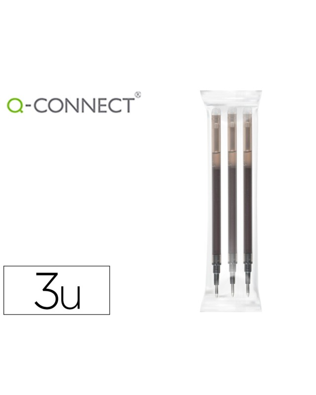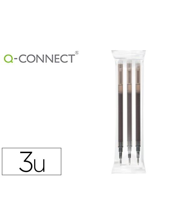 Recambio boligrafo q-connect retractil kf11057 borrable negro caja de 3 unidades