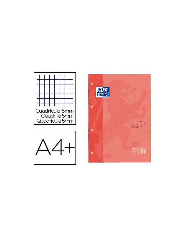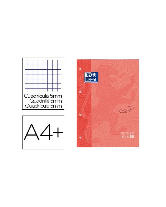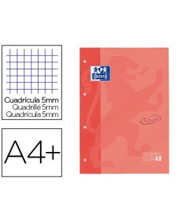 Recambio color 1 oxford din a4+ 80 hojas 90 gr cuadricula 5 mm tapa blanda 4 taladros coral touch