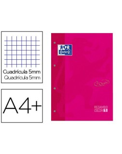 Recambio color 1 oxford din a4+ 80 hojas 90 gr cuadricula 5 mm tapa blanda 4 taladros fucsia touch