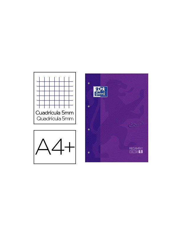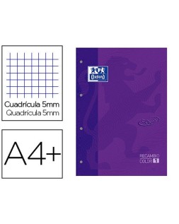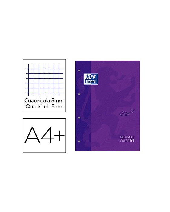 Recambio color 1 oxford din a4+ 80 hojas 90 gr cuadricula 5 mm tapa blanda 4 taladros lila touch