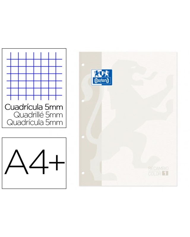 Recambio color 1 oxford din a4+ 80 hojas 90 gr cuadro 5 mm 4 taladros color blanco
