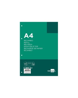 Recambio liderpapel a4 100 hojas 100 g/m2 rayado horizontal 4 taladros bandas de 5 colores