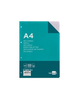 Recambio liderpapel a4 100 hojas 100g/m2 milimetrado 2mm sin margen 4 taladros