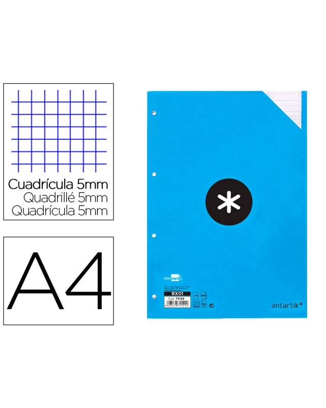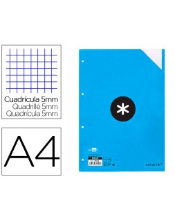 Recambio a4 antartik 100 hojas 90g/m2 cuadro 5 mm 4 taladros bandas de 5 colores