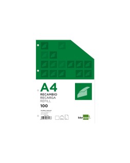 Recambio liderpapel a4 100 hojas 100g/m2 liso sin margen 4 taladros