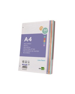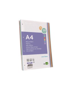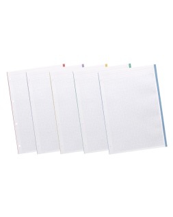 Recambio de papel de 90 g/m². Juego de 250 hojas de recambio retractiladasen paquetes. Estas hojas sueltas, cuentan con 4 taladros de archivo para facilitar su almacenamiento en carpetas o archivadores de anillas. Cuadro de 5mm con 5 bandas de color.