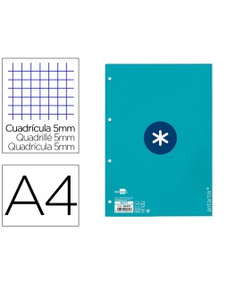 Recambio A4 Antartik. 80 hojas. Cuadro de 5 mm. 1 banda con 4 taladros. Elrecambio con exclusivo diseño, características de alta gama, un recambio sin precedentes que se distingue por la suavidad y blancura de su papel. Papel extrablanco de 90 g/m2, ultrasuave que hace la escritura mucho más fluida. La tinta no traspasa. Color turquesa. Ideal como complemento para tucarpeta Antartik. Color turquesa.