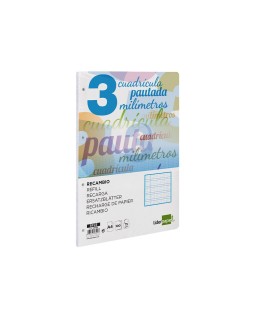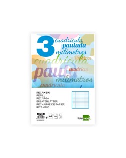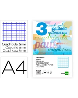 Recambio liderpapel a4 pautaguia 100 hojas 75 g cuadriculado pautado 3mm con margen 4 taladros