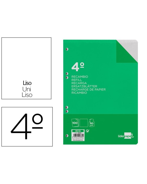 Recambio liderpapel cuarto 100 hojas 60g/m2 liso sin margen 6 taladros