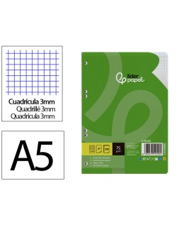 Recambio liderpapel a5 100 hojas 75gr cuadro 3mm con margen 6 taladros