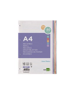 Recambio liderpapel a4 120 hojas 90gr cuadro 5 mm 4 taladros bandas de 5 colores pasteles