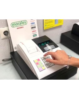 Este es el modelo más económico que cumple con la normativa de facturas simplificadas vigente. Impresora de tickets térmica de 57 mm. Visor VFD alfanumérico de operador. 14 departamentos. 400 PLU. 8 empleados. 2000 líneas de cinta de control electrónica. Programación como en un teléfono móvil. Función de calculadora. Cajón pequeño (8 monederos y 4 billeteros). Tecla doble cero. Medidas: 360 x 200 x 340 mm.