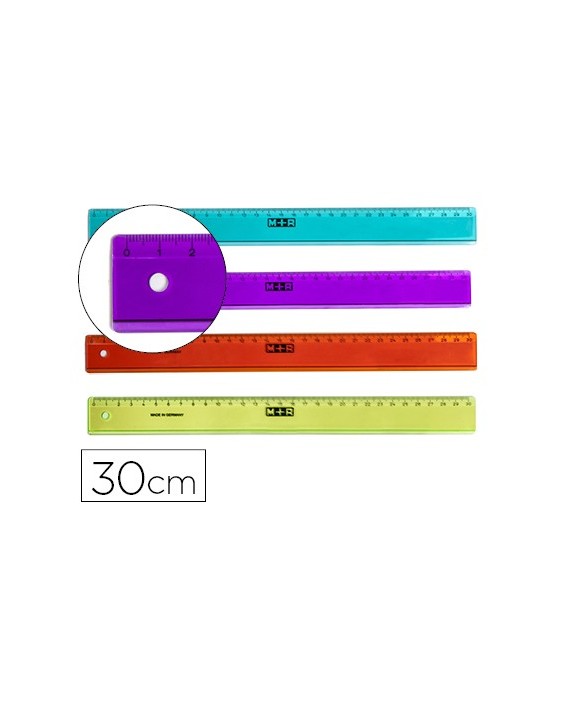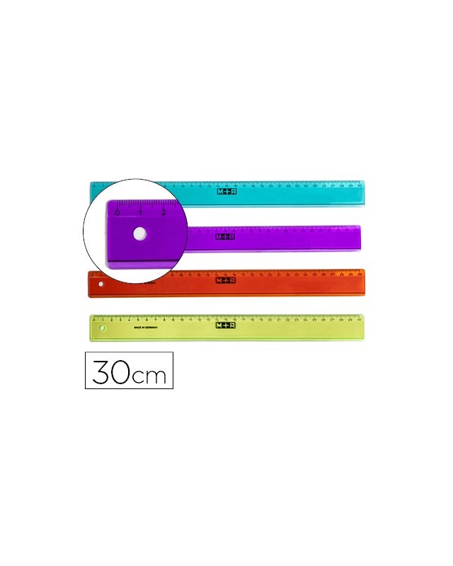 Regla m+r 30 cm plastico graduada y biselada colores surtidos