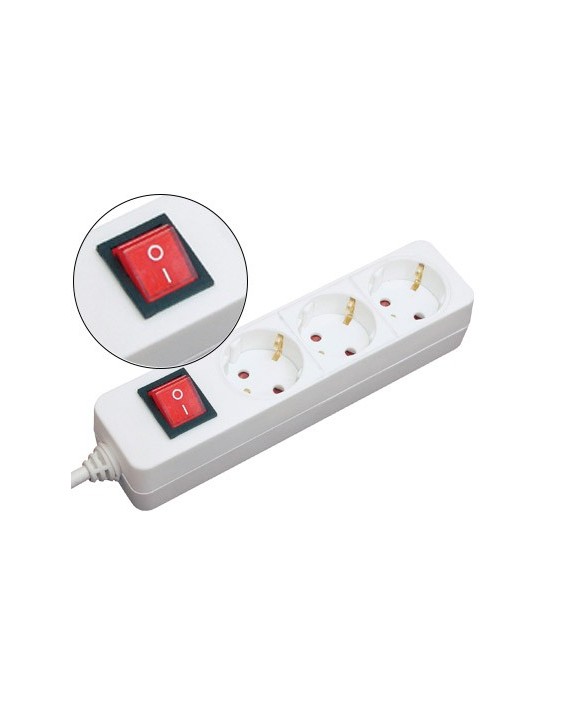 Regleta protectora de tomas con interruptor de seguridad iluminado. Con seguridad para niños, obturadores en los agujeros. Ideal para usar en el hogar y la oficina o en espacios donde se requiera el uso de muchos aparatos eléctricos. Resistencia de 1000 julios. Longitud del cable: 1,4 m.