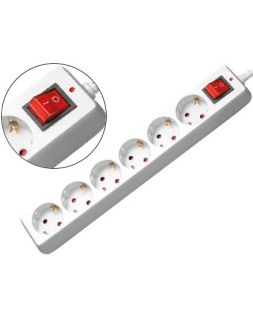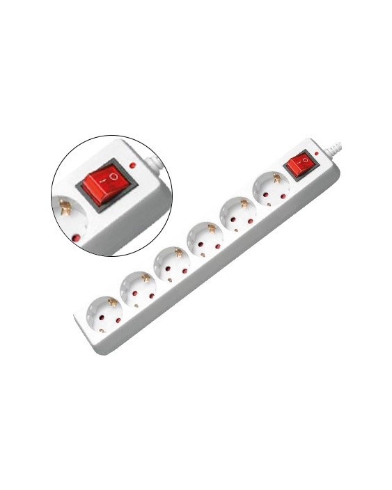 Regleta protectora de tomas con interruptor de seguridad iluminado. Con seguridad para niños, obturadores en los agujeros. Ideal para usar en el hogar y la oficina o en espacios donde se requiera el uso de muchos aparatos eléctricos. Resistencia de 1000 julios. Longitud del cable: 1,4 m.
