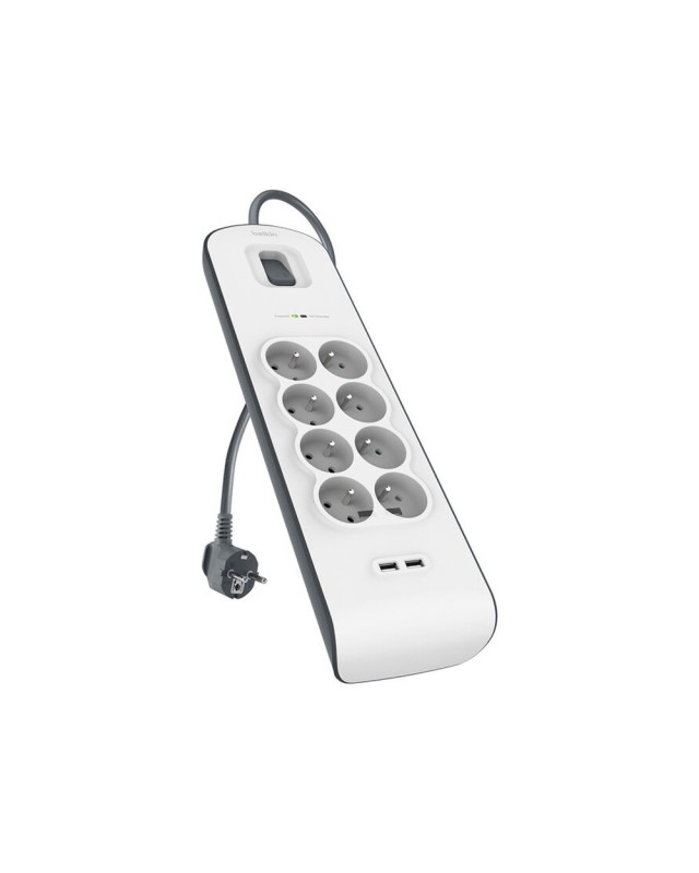 Regleta belkin bsv804vf2m de proteccion contra sobretensiones 8 tomas + 2 puertos usb (2,4 a) boton de