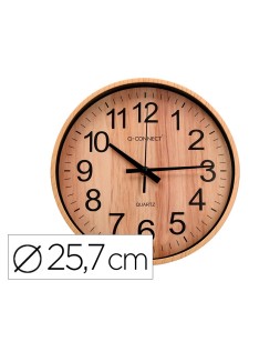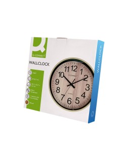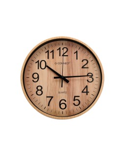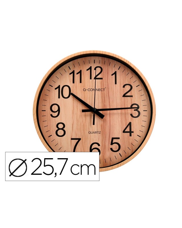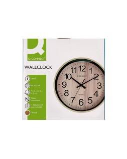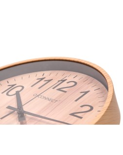 Reloj de pared, diseño actual y atractivo. Marco de plástico de madera natural. Con números de color marrón sobre fondo de color madera natural. Números grandes para una lectura fácil. Mecanismo silencioso. Funciona con 1 pila AA (no incluida). Diámetro: 257 mm.
