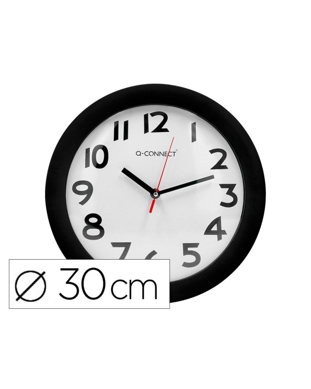 Reloj q-connect de pared plastico oficina redondo 30 cm marco negro