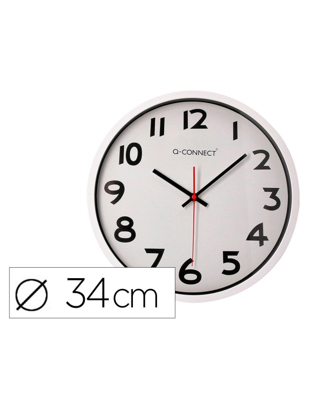 Reloj q-connect de pared plastico oficina redondo 34 cm marco blanco