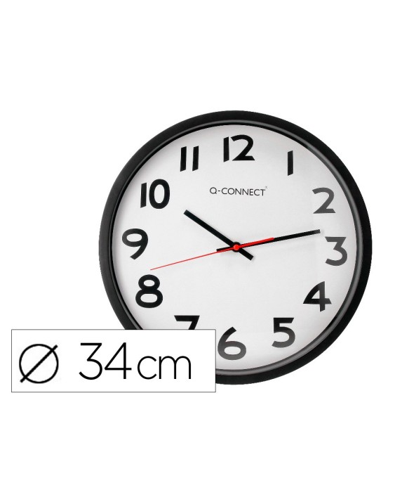 Reloj q-connect de pared plastico oficina redondo 34 cm marco negro