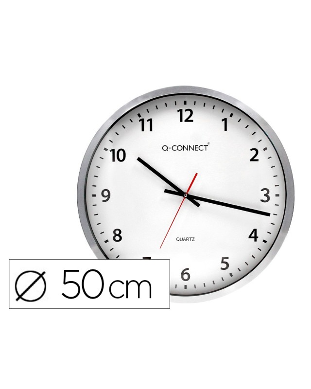 Reloj q-connect de pared plastico oficina redondo 50 cm marco cromado