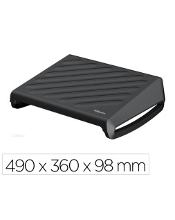 Reposapiés con 3 ajustes de altura, eleva las piernas y pies para aliviar la presión sobre la espalda. Gran plataforma de apoyo de 450x350 mm. Opción de balanceo para aumentar el movimiento de las piernas y favorecer la circulación. Diseño compacto, liviano y portátil que es fácil de configurar,ajustar, y almacenar ideal para trabajos híbridos. Estética de diseño mo derno disponible en opciones de color blanco y negro. Fabricado con materiales que son 100 % reciclables y duraderos con una garantía extendida de 5años. Medidas: 490x360x98 mm. Peso: 2,16 kg.