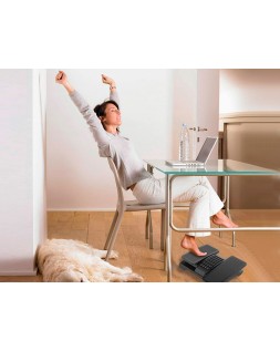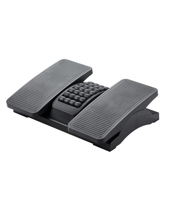 Reposapiés ajustable en altura. Parte derecha e izquierda ajustables de manera separada. Base antideslizante. La superficie central contiene bolas de masaje para aliviar el dolor en los pies y favorecer la circulación de la sangre en las piernas. Medidas: 430 x 110 x 320 mm.