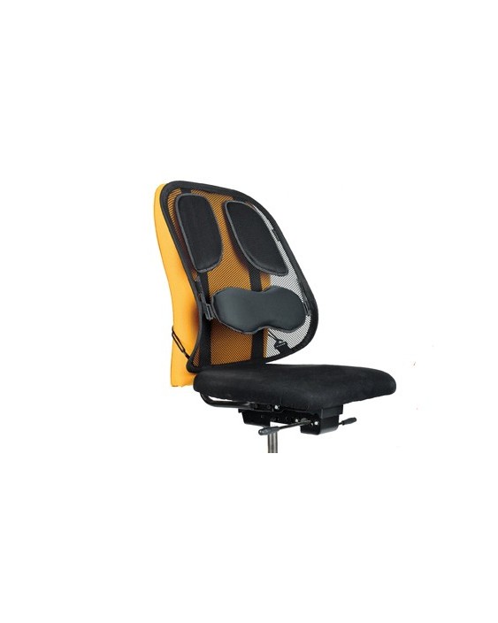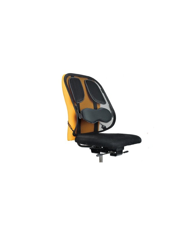 Reduce la tensión de la espalda manteniendo la posición adecuada cuando se está sentado. Se amolda a los contornos del cuerpo proporcionando el máximo apoyo. Material de malla que permite la circulación del aire para mayor comodidad personal. Sistema tensor que permite ajustar el respaldo a cualquier silla. Incorpora cojín lumbar de espuma ajustable verticalmente para poder colocarse según las preferencias de cada usuario. Medidas: 304 x 370 x 195 mm.