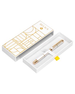 El roller de la colección Carte Blanche es una pieza única con un cuerpo blanco y elegantes detalles metálicos dorados, con un toque de sofisticación y estilo. Viene presentado en una caja de diseño blanca, decorada con trazos geométricos en dorado, complementando perfectamente el aspecto estético del bolígrafo, que sigue el mismo estilo. La colección Carte Blanche ha sido inspirada por el concepto de tener completa libertad creativa y poder hacer lo que uno desee, evocando esta sensación de libertad y posibilidades infinitas al escribir. Asociado al nombre, el diseño geométrico en trazos dorados simboliza la apertura y la expansión de la imaginación, permitiendo explorar nuevas ideas y expresiones a través de la escritura. Con la la colección Carte Blanche, cada vez que t
