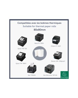 Rollo de papel térmico de 48 gr para cajas registradoras y TPV. 80 mm de ancho y 70 mm de diámetro. El rollo tiene 72 metros de largo de papel con una variación de + o 2 metros. El papel de alta sensibilidad garantiza impresiones nítidas. Señal de aviso de fin de tirada para evitar sorpresas.