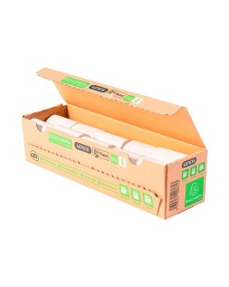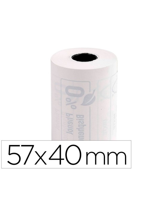Rollo sumadora de papel térmico. 1 capa. Para caja registradora, balanza, tarjeta bancaria. Medidas: 57 mm de ancho y 40 mm de diámetro. Longitud: 18 m. Fabricado íntegramente sin soporte central, sin alma de cartón, cero residuos plásticos. Papel garantizado libre de fenol, es decir sin Bisfenol A, según la normativa europea que prohíbe su uso a partir de enero de 2020, pero también sin Bisfenol S. En el reverso del papel se encuentran impresas las palabras libre de fenol y el logo FSC. Sobreembalaje en caja de cartón con cierre para una mejor protección contra la luz y la humedad. Las bobinas se mantienen así en mejores condiciones antes de su uso. Papel de alta sensibilidad que garantiza una buena legibilidad de la impresión. A. Advertencia de fin de rollo. Apto para