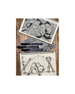 Rotulador especialmente indicado para diseño gráfico, ilustraciones, viñetas y caricaturas. Punta metálica de poliacetal altamente resistente. Tintade color negro con base de agua. Alta resistencia al agua y al desgaste. Distintos grosores para diferentes usos.