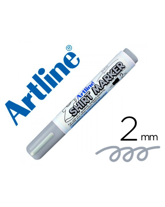 Rotulador para camisetas de punta redonda de fibra de poliéster. Tinta pigmentada a base de agua y olor neutro, resistente a la acción de la luz y al lavado hasta 60ºC, después de haber sido fijado con la plancha. Longitud de escritura: 400 m. Trazo aproximado de 2 mm.