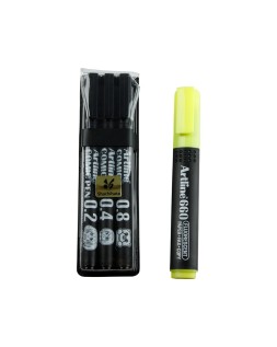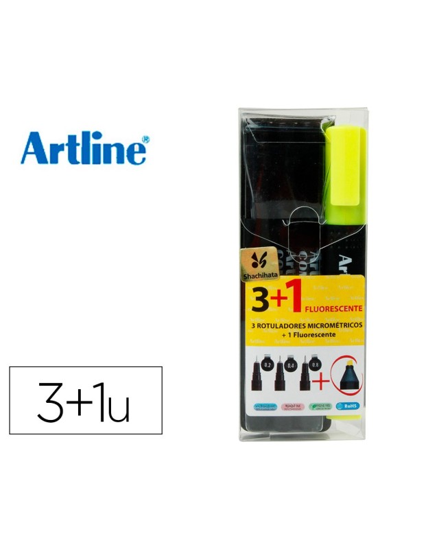 Rotulador artline comic pen calibrado micrometrico negro bolsa de 3 uds 0,2 0,4 0,8 + permanente 853