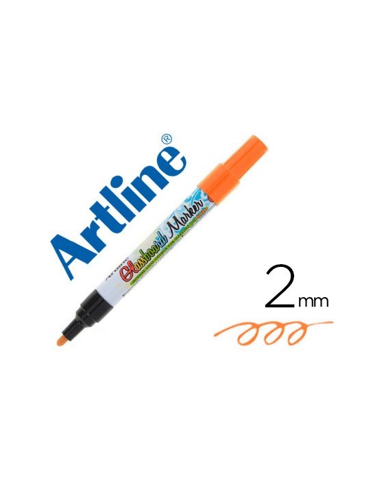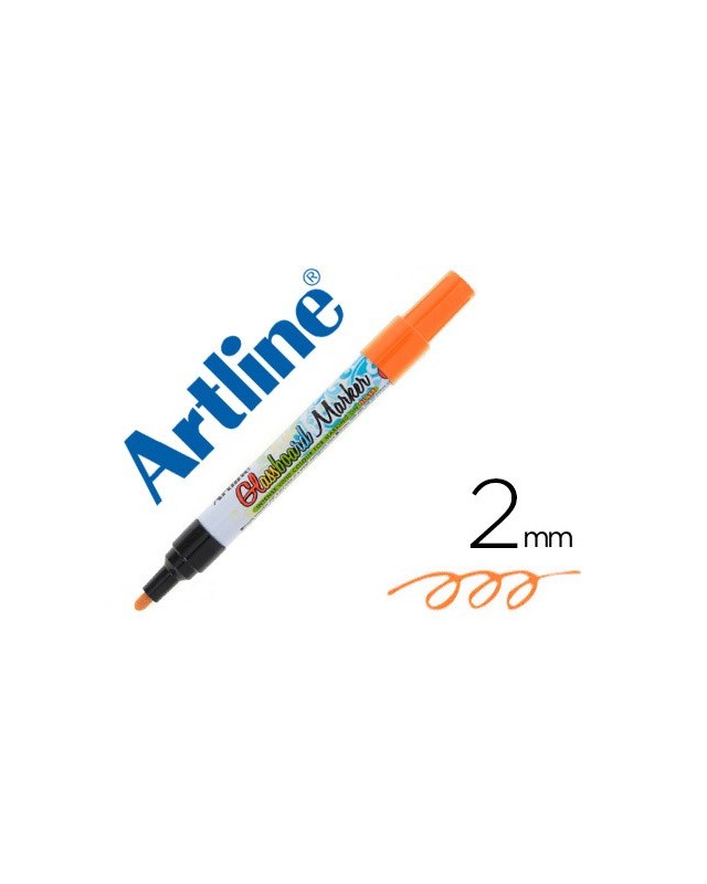 Rotulador artline glass marker especial cristal borrable en seco o humedo color naranja fluor